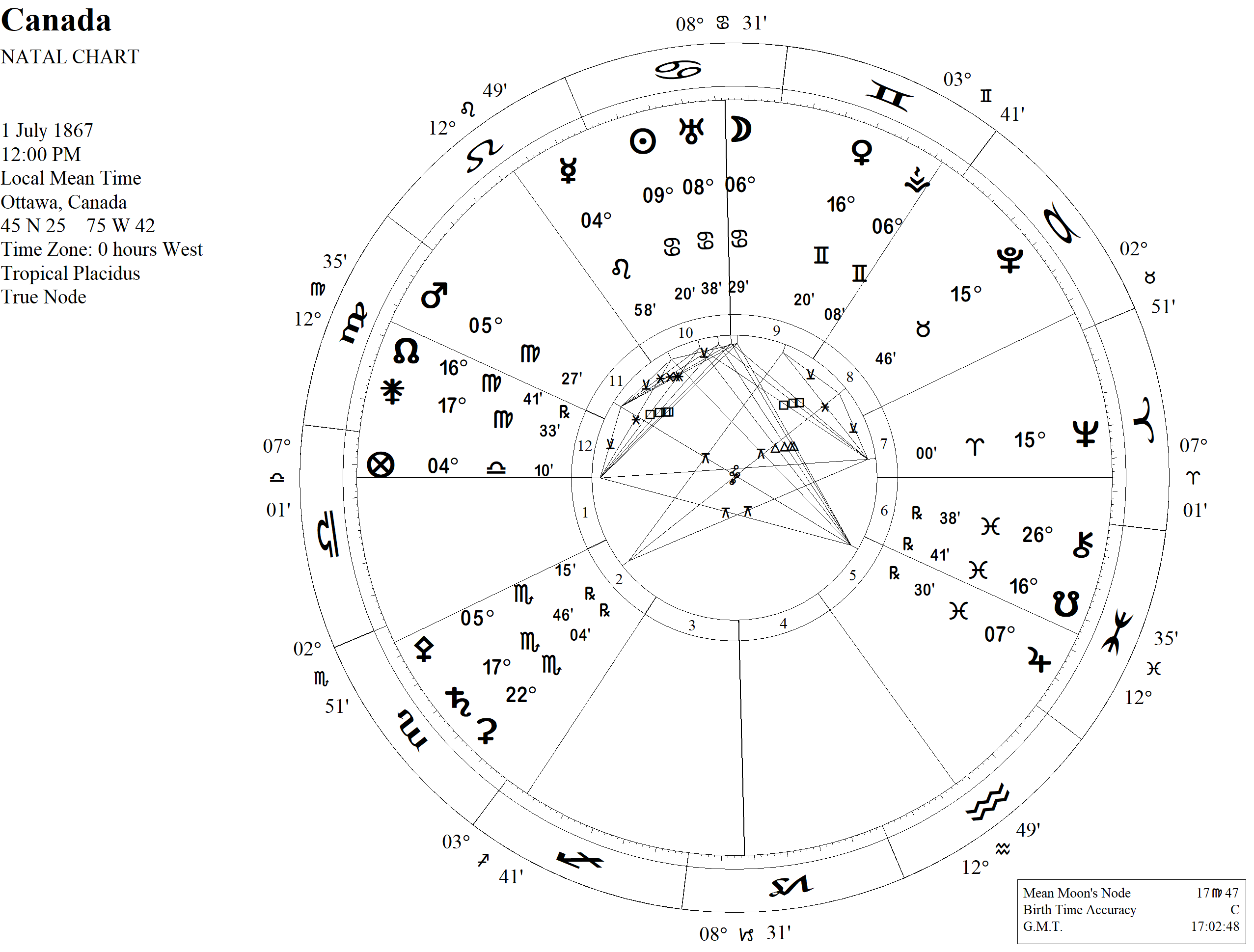 For the past few days Canada, or more specifically Canadian protesters have been taking the lead in demanding their freedoms back in the midst of medical tyranny. If we use the less popular natal chart cast for when the British North American Act went into effect on July 1, 1867 at the time of the official announcement at 12:00 pm, we see a chart putting Libra rather than Aries on the Ascendant.