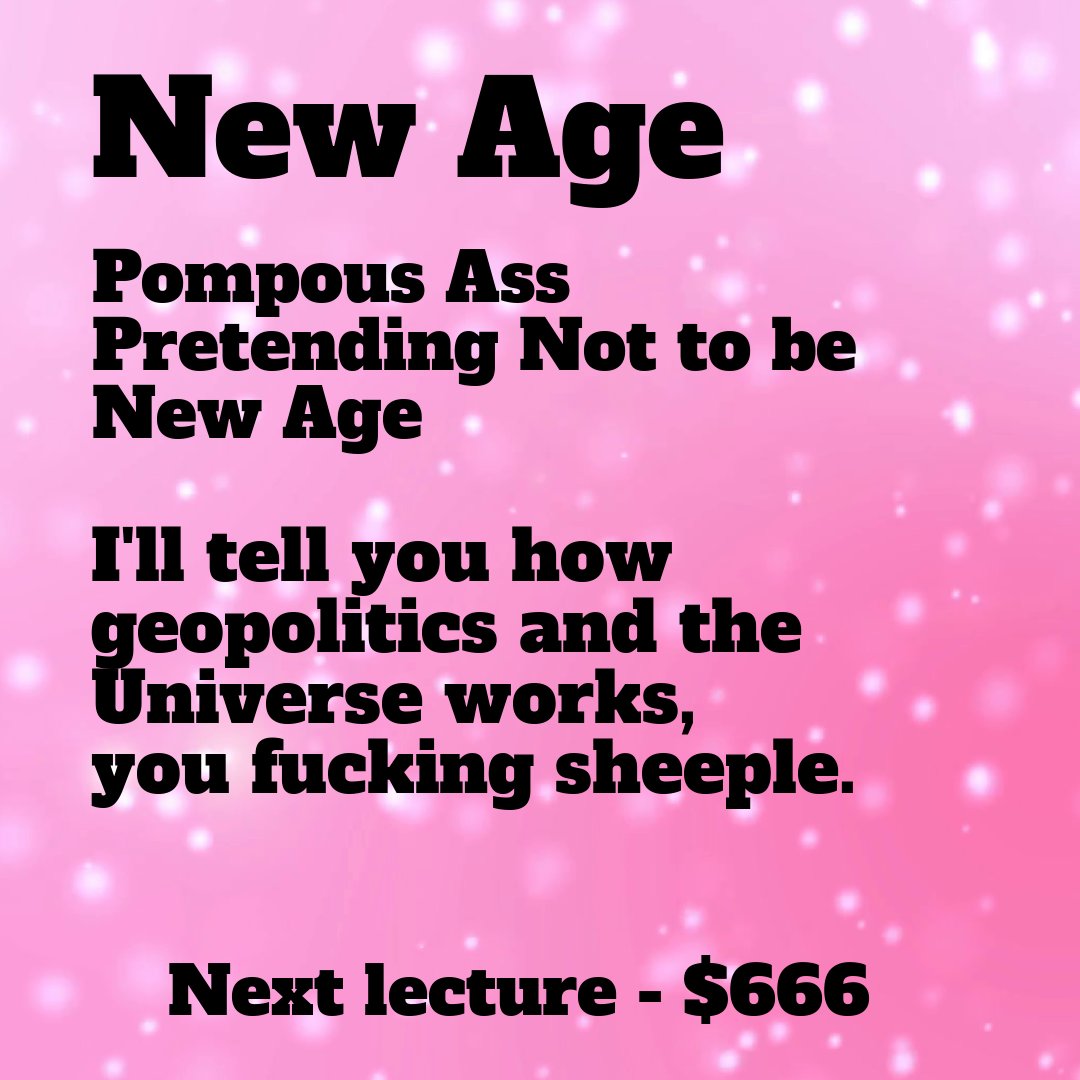 The second thing that has come to my attention is that New Age deceptions are simultaneously reaching an all-time peak in performance. There are so many styles, brands, shades and hues of this nonsense that it has become harder and harder for the average person to be able to identify New Age shills and zombies when they meet them, and to be able to spot and decode their snaky language. So as a person who was literally surrounded by these types for many years of my life that I can never get back, I’ve compiled a list below breaking down several of their different personalities in meme form.